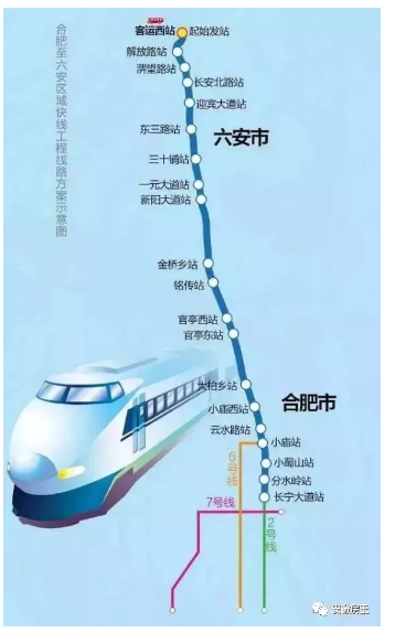 合肥—新桥国际机场—六安,全长103公里,为骨架城际线;
