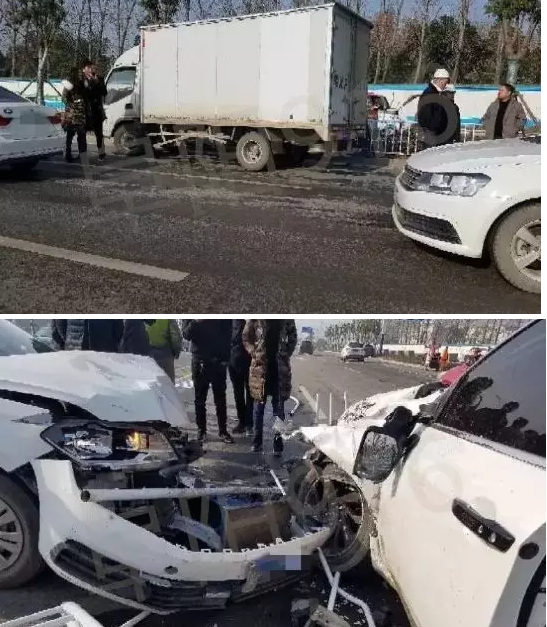 阜阳向阳路大桥附近三车相撞!气囊弹出,车头面目全非…