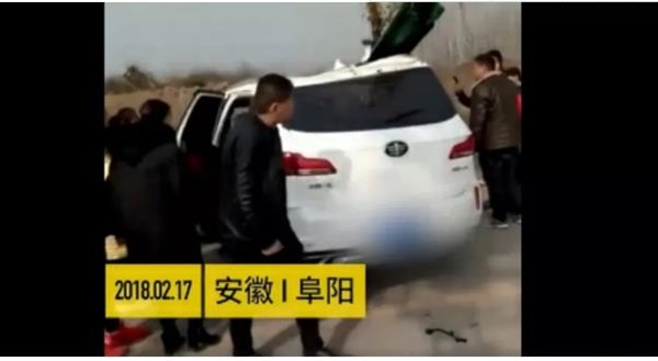2018年2月17日,安徽阜阳,一家三口路遇车祸,事故现场惨烈,护栏插进车厢,车主疑似酒驾,3人已失去生命迹象。