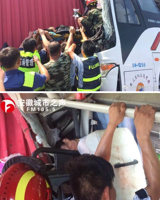 昨日中午,S17蚌合高速蚌埠往合肥方向92公里处(杨庙收费站以北约5公里、合肥市长丰县境内),阜汽集团一辆客车与货车相撞。客车上大约20多位乘客,目前已有20位受伤人员紧急送往医院。