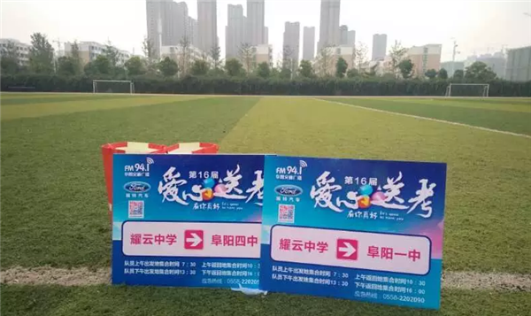 6月5日,阜阳广播电视台交通广播“福特汽车”第16届爱心送考活动在阜阳城南新三中举行启动仪式,全市五县三区4000多辆出租车、私家车及公交车将为广大考生提供免费送考服务,代表着爱心与祝福的